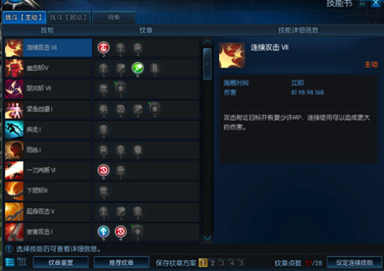 愤怒一击在角色血少时会造成很高的伤害。练级时血一般都是不满的,熟练些的用户可以控制在半血下打怪,这时候愤怒一击的效果比较不错。