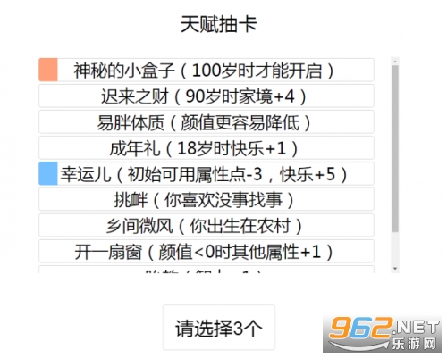2、其次就是开局的时候家境选好一点,避免因为家境不好早夭;