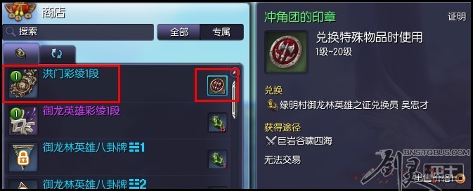 各职业洪门武器统一在绿明村御龙林英雄之证兑换商人“吴忠才”处,具体位置如下: